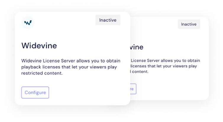 Gain access to a fully managed cloud DRM platform. Usage-based billing tailored to your needs.